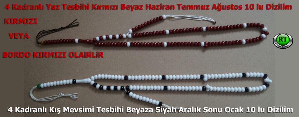 Tesbihlerimiz mevsimin ve havanın durumunun rengine uygun, renkli çift kadranlı Abaküs mevsim tesbihi. (siyah, kar beyaz, yeşil, kırmızı veya bordo kırmızı, kahve veya sarı veya turuncu, saydam su rengi, ve çamur rengi, mor renk,pembe,turkuaz mavi, bulut mavisi,gri renkte,agaç tesbih,fosforlu tesbih…)